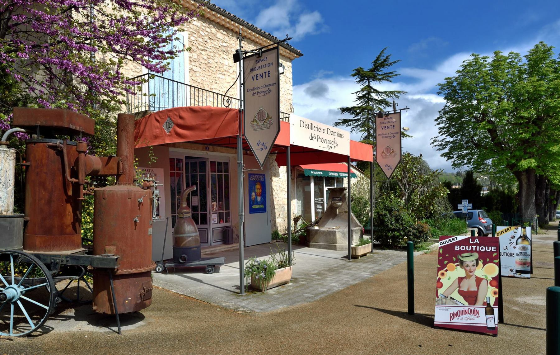 Then, we switch into the South of France, with the creations from the Distilleries de Provence. In a montainous territory, situated in the sunny Alpes de Haute-Provence, you could then explore their own fields of wormwood (Artemisia Absinthium), spread into the village of Lardiers. In this village, you could also enjoy their wide range of spirits, during a gourmet aperitif near the mythical Grande Fontaine. This ancestral structure focuses on the powerful taste of the absinthe plants, adorning with a garland of green anise, armo, mint and spices. This tasty ensemble offers to this elixir , rich of many varieties of absinthes, even one without thuyone has even been selected.