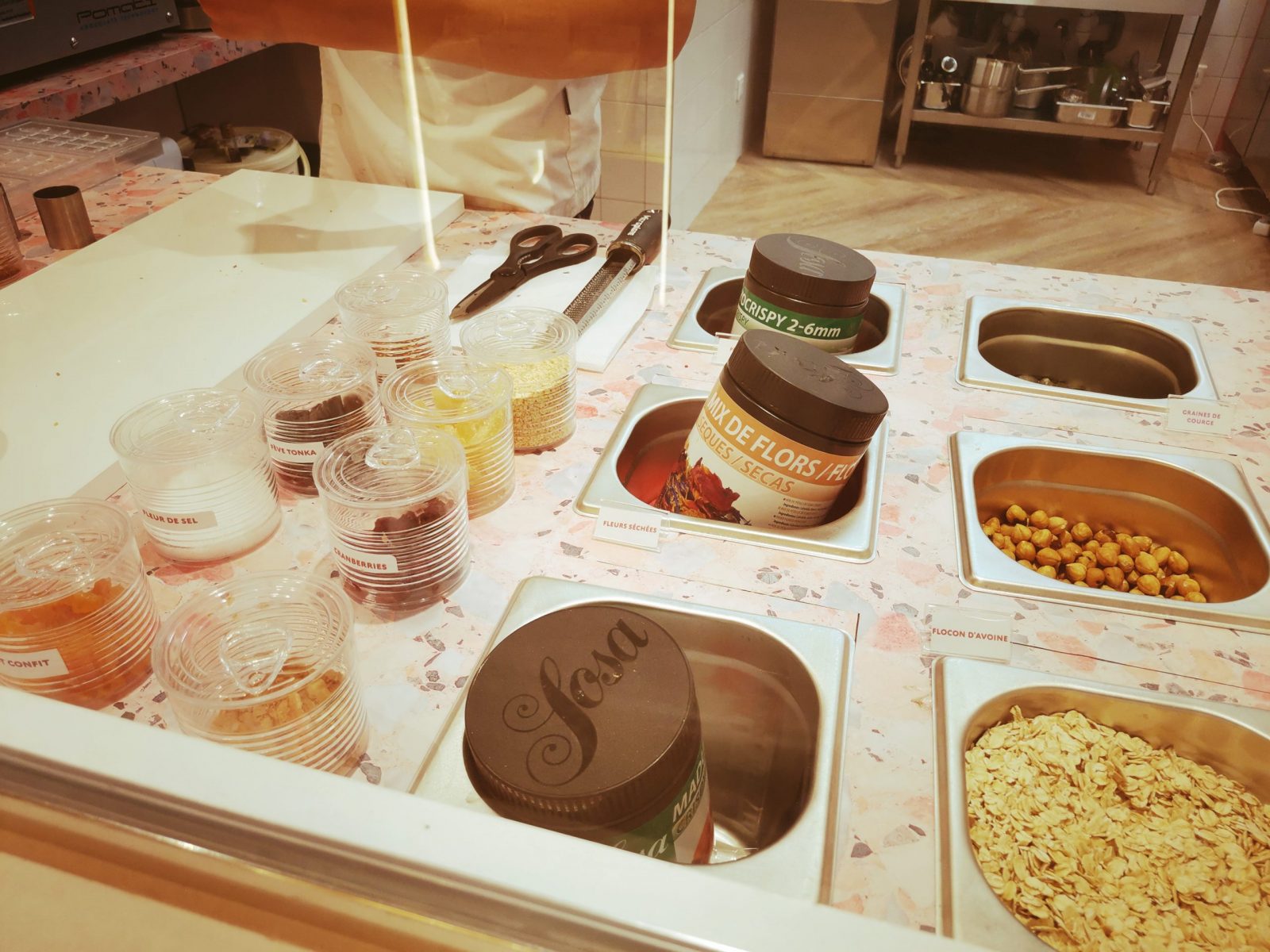 Facing this stall, you may express your passion for chocolate, since you could make your chocolate bar (dark or milk), built under your eyes by a master chocolatier and topped with several charming surprises, according to your own taste. Therefore, at Sweet Bazar, in less than ten minutes, opt for your customized cacao delight, possibly sublimed by a selection of natural French products, such as violets, muesli or even dried strawberries.