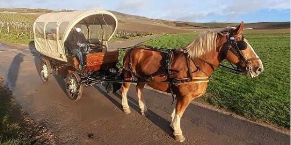 On top of that, in some of their Aÿ vines, Quazars, their Boulonnais draft horse, helps them with the mechanical grassing, notably for the Blanc de Noirs plots. Although mechanic tools and tractors are used for the remainder of the vineyard and even the harvested hay from their farmland in Aÿ is used to provide the Quazars‘ food.