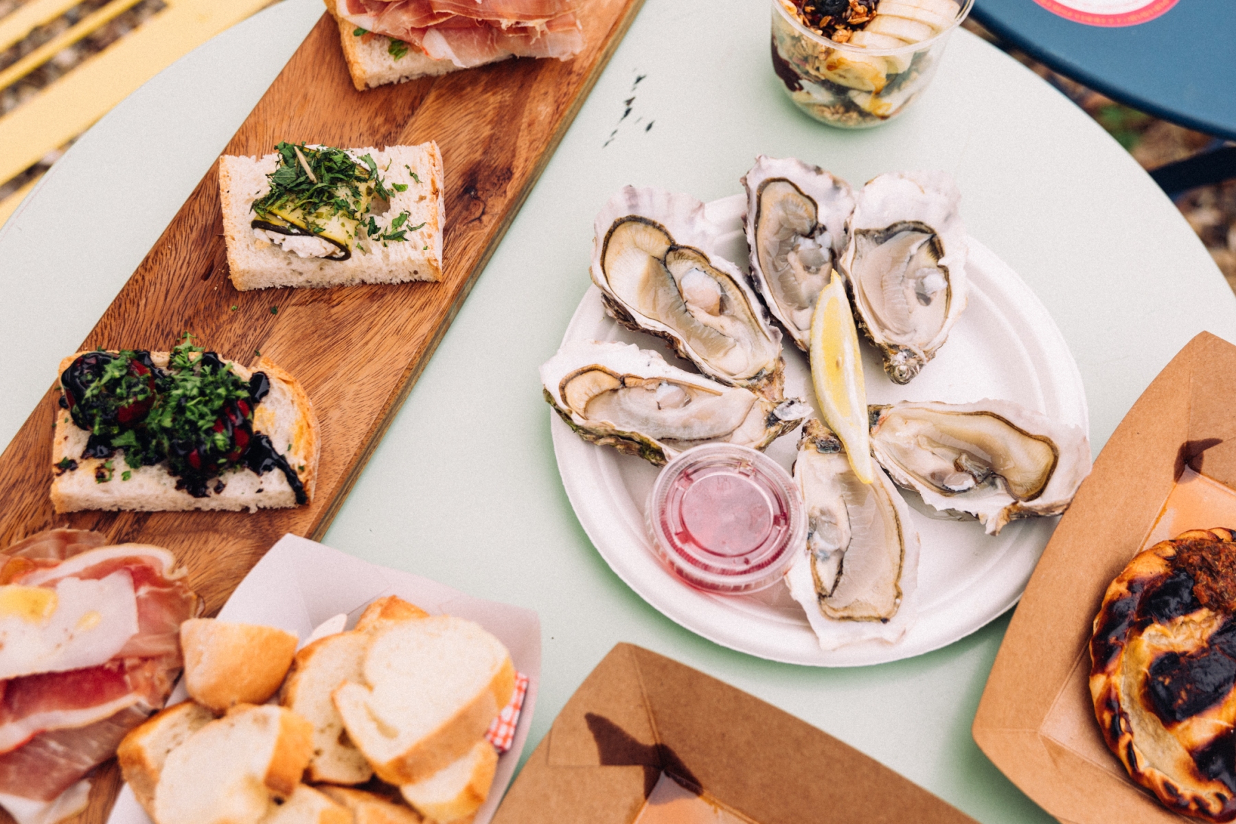 And for all of you preferring iodine notes, the oyster bar of La Cabane Des Bouron, coming straight from homemade producers, situated in the wild Atlantic Coast and more precisely its Oleron Island. Spanish tapas are not missed out with the delicious assortments by Nolita Street, just before a Brazilian dessert, full of fresh and healthy açai, prepared in front of you, by Puraçai.