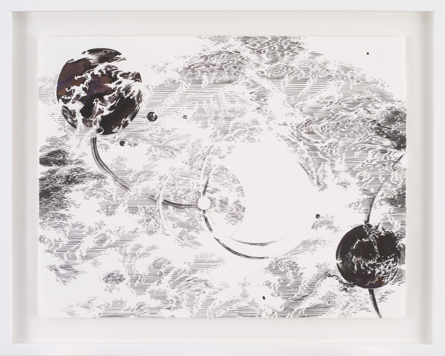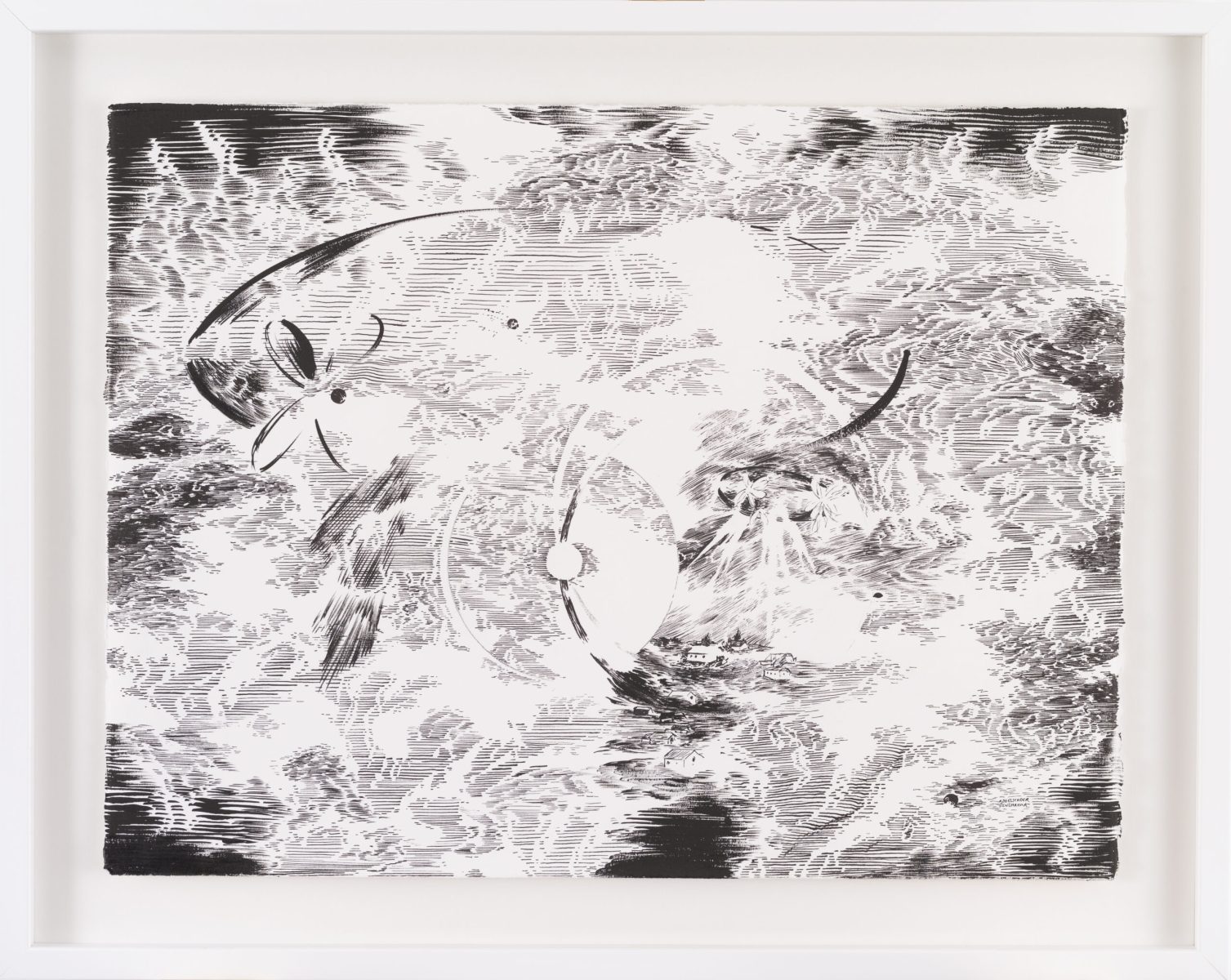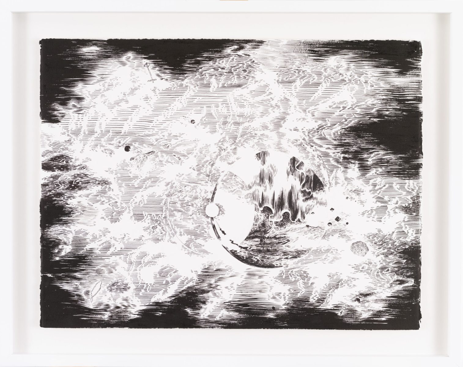 Conceived as a total immersion in this rich artist‘s imagination, this Echoes exhibition showcases the Abdelkader Benchamma‘s latest ink artworks on paper, shortly after delivered a unique performance in early October 2021 with the realization of an impressive fresco on the walls and ceiling of this magnificent exhibition apartment. Don’t waste time then to book your visit and thus admire the graphic know-how of Abdelkader Benchamma and eventually unravel the basements of his enigmatic thoughts.