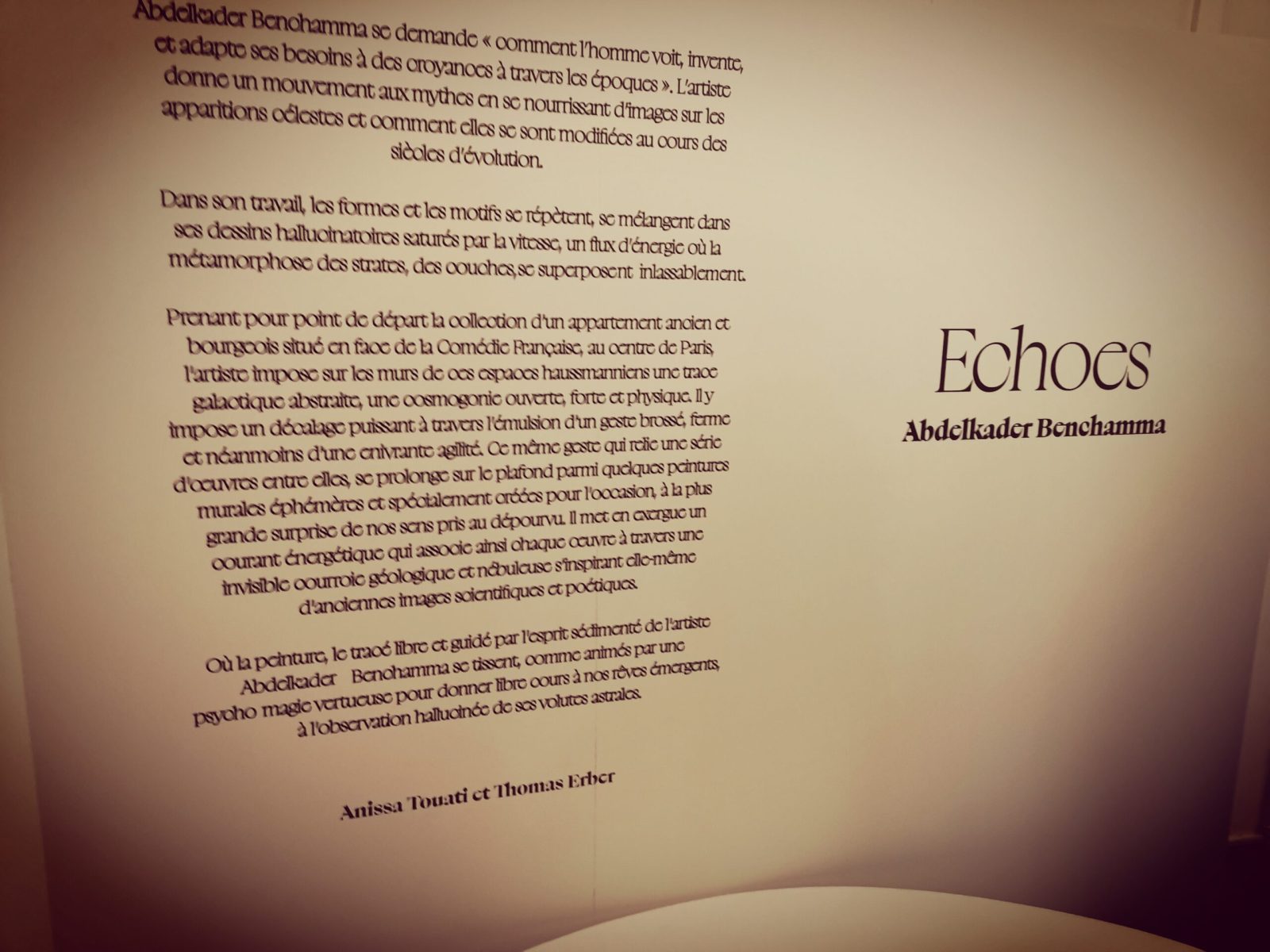 Echoes exhibition at Rupture & Associés, 1 Place André Malraux, 75001 Paris (France). More information on the official website.