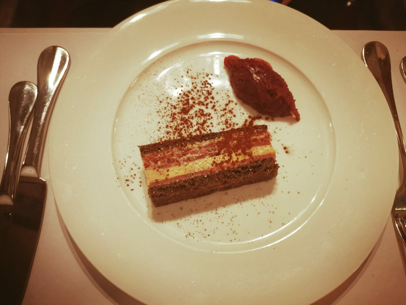By the way, this same cheese is also proposed over the eclectic cheese platter, composed of slides of Tomme de Cambrai, again Maroilles cheese, Camembert de Roncques and some fresh goat cheese from the Artoise farm, and naturally accompanied by a glass of red Bourgueil. At last, another update of the illustrious crème brulée but this time filled with chicory.