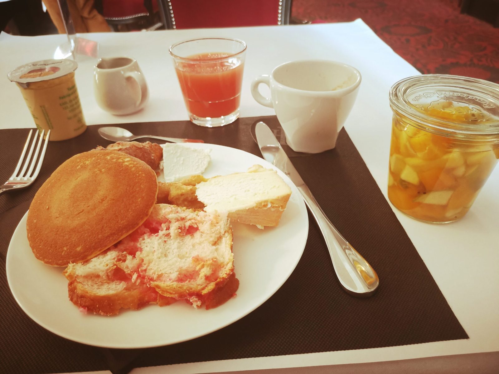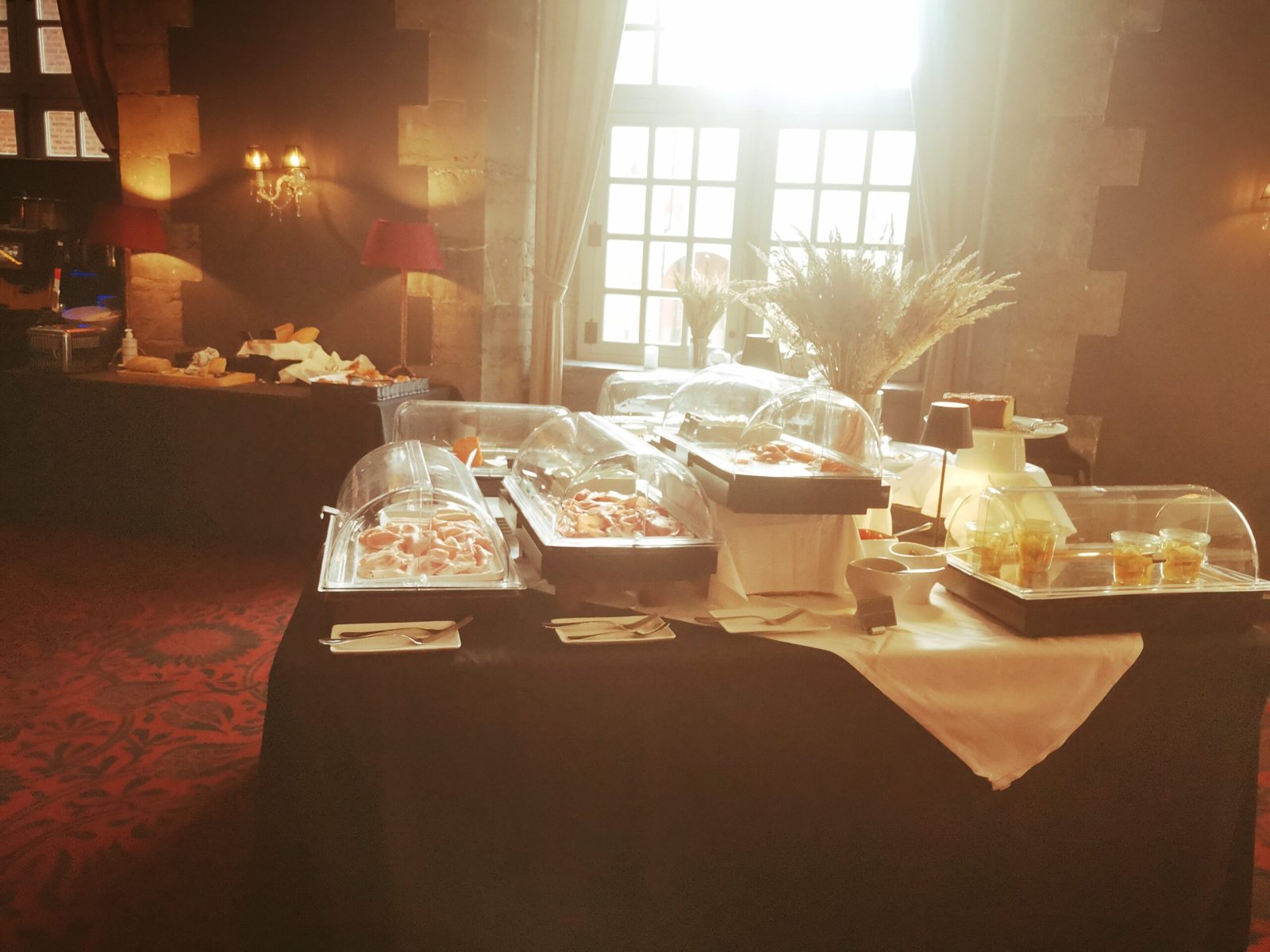 In this same beautiful hall takes place the fully furnished breakfast moment to share with other guests. The fresh selection is served as a buffet, with a choice of homemade pastries, pancakes, smoked salmon, broiled (or not) eggs, tasty cereals, along different types of breads and many other delights.