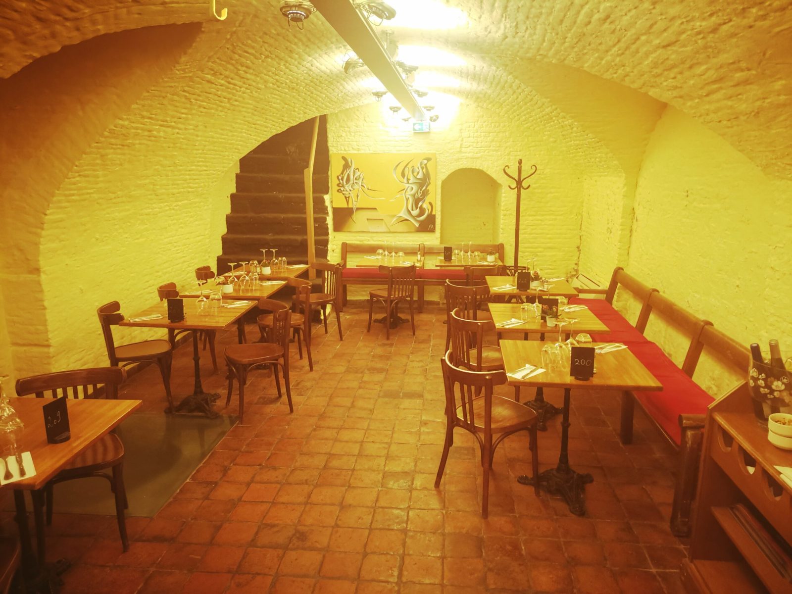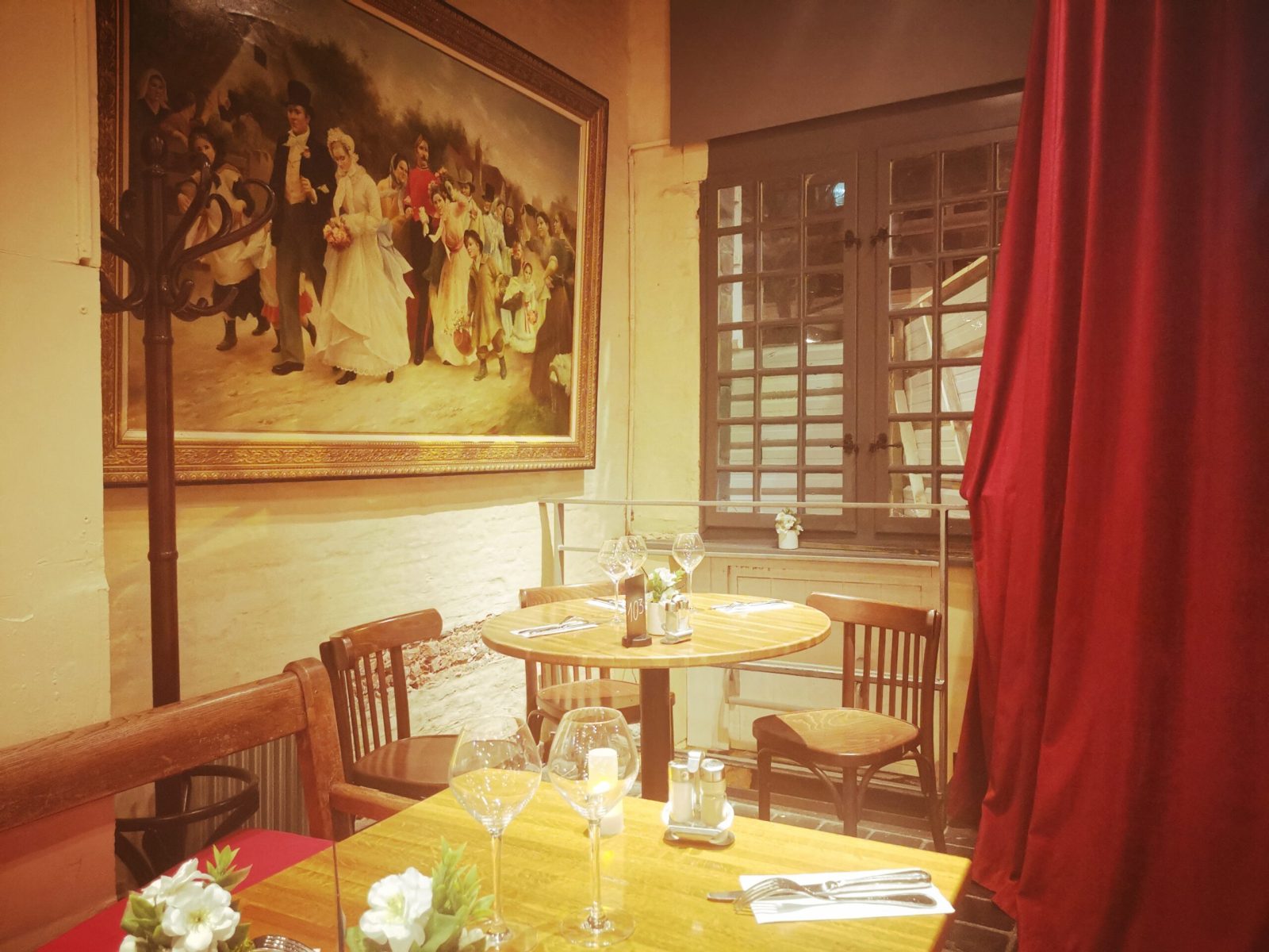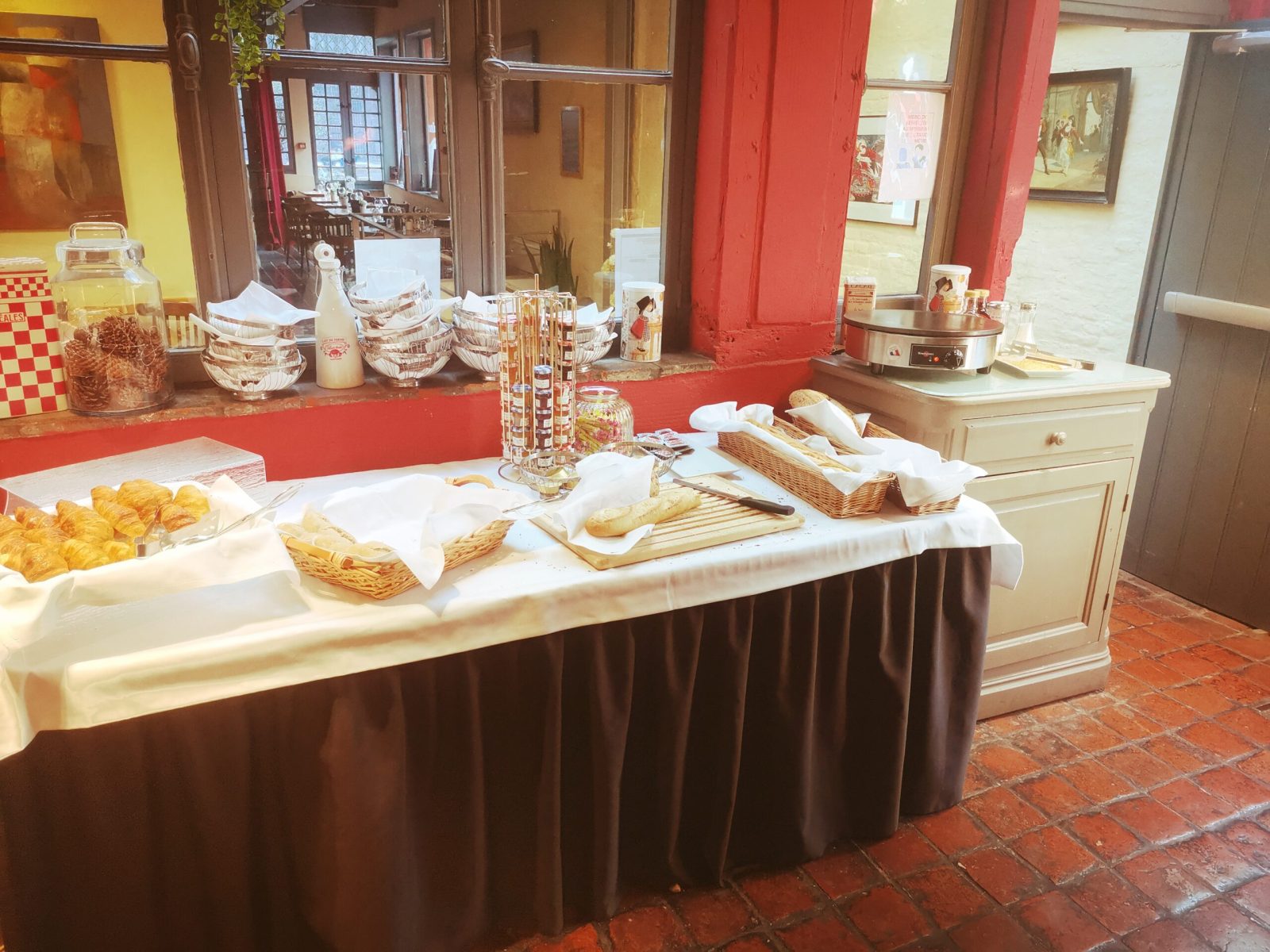 As desserts, you’re invited to pick up one of the sweet delights, revisited for the Northern territory. Among them, don’t miss the Pavé Glacé Flamand, which is a chicory and Speculoos biscuit ice cream with meringue, unless you prefer opting for a brownie, adapted with Speculoos custard. If you want to book for a group or just come the morning after for a continental breakfast, just settle beneath the red vaulted rooms of the Estaminet. Help yourself between those fresh sweet or salty products and energize your day with a cup of Crémant!