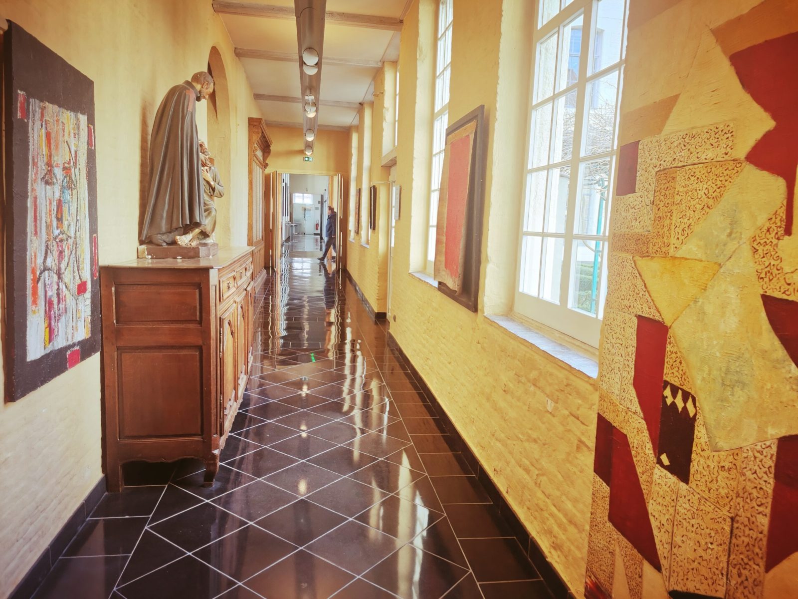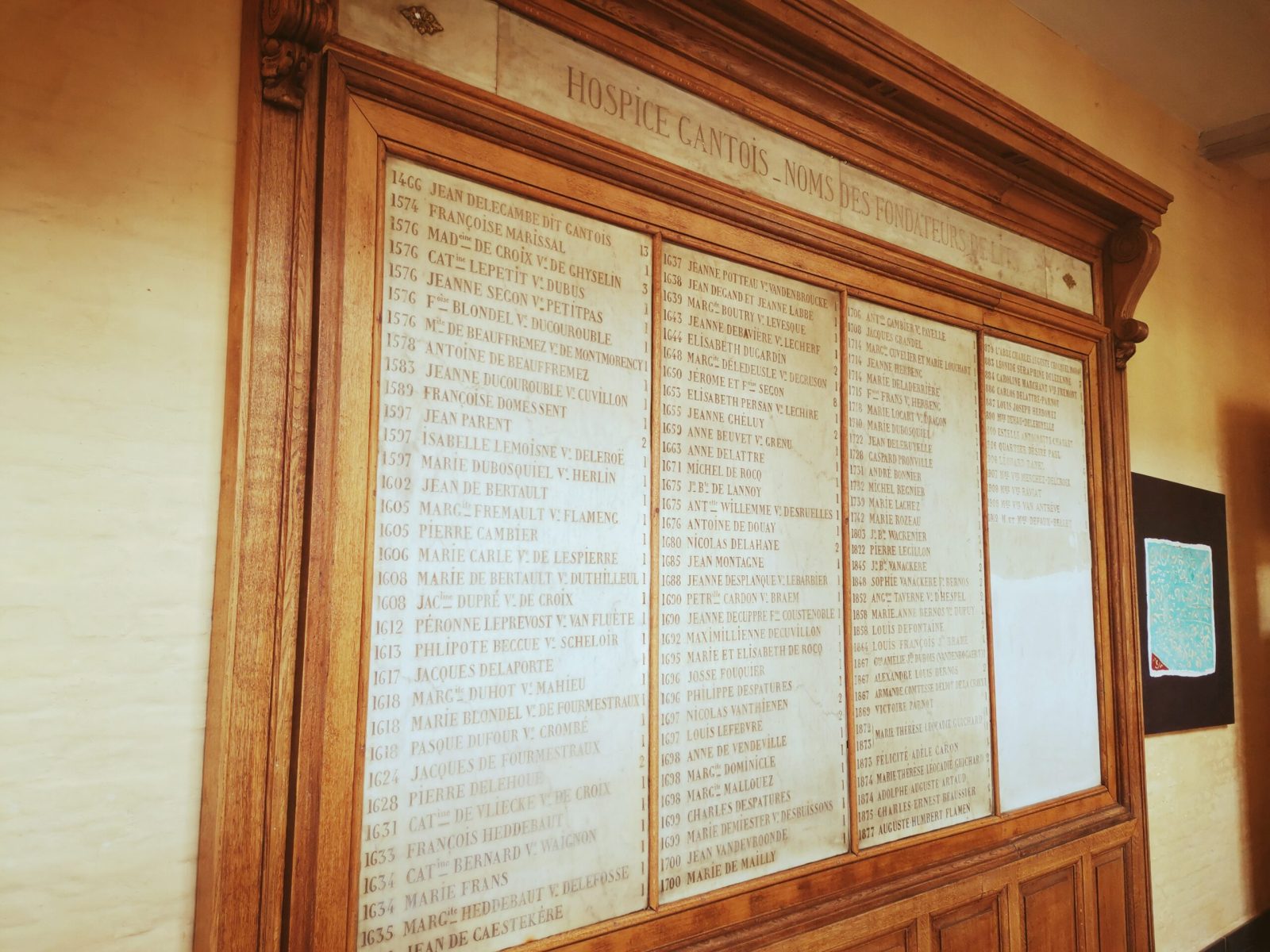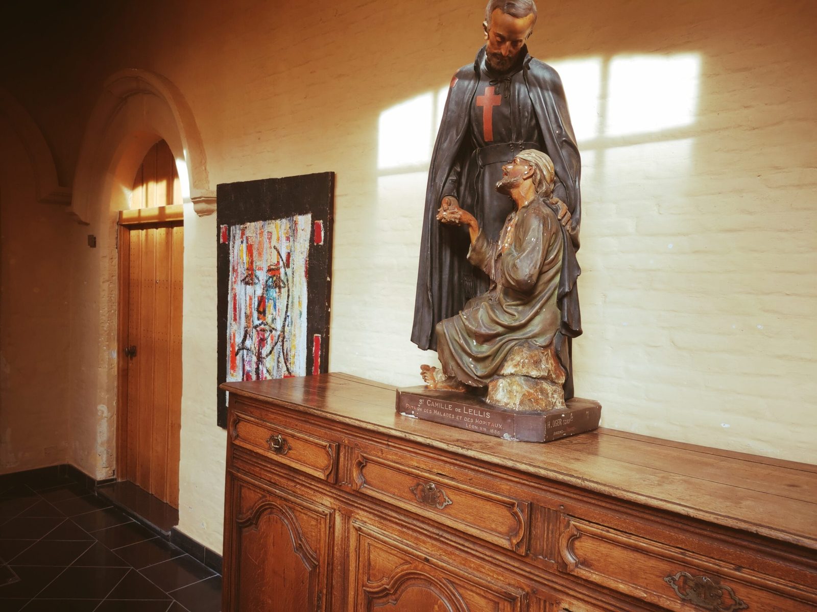 By the way, the hospice was enlarged in 1664 and 1672 in order to include a house for the chaplain, along a reception house, including a niche housing a small statue representing Saint John-Baptiste, nearby a remarkable altarpiece. Nonetheless, don’t miss the remains of a fresco depicting Saint Piat and a Cephalophore Saint, carrying his skull in his hands.