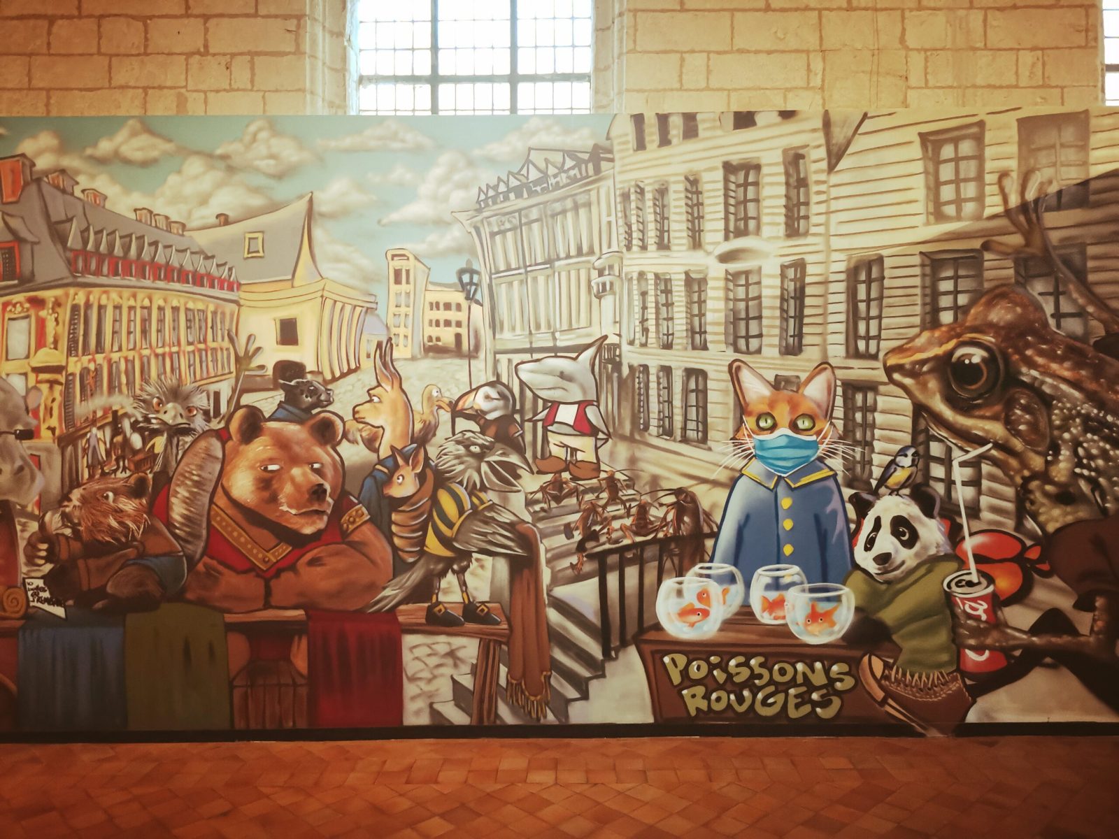 This is where temporary exhibitions are often held, like the recent art installation, highlighting some street artworks. Those were realized by the French Collectif Renart, mixing frescoes representing contemporary scenes and ancient habits, starring Lady Alezia showing her calligraphy abilities.