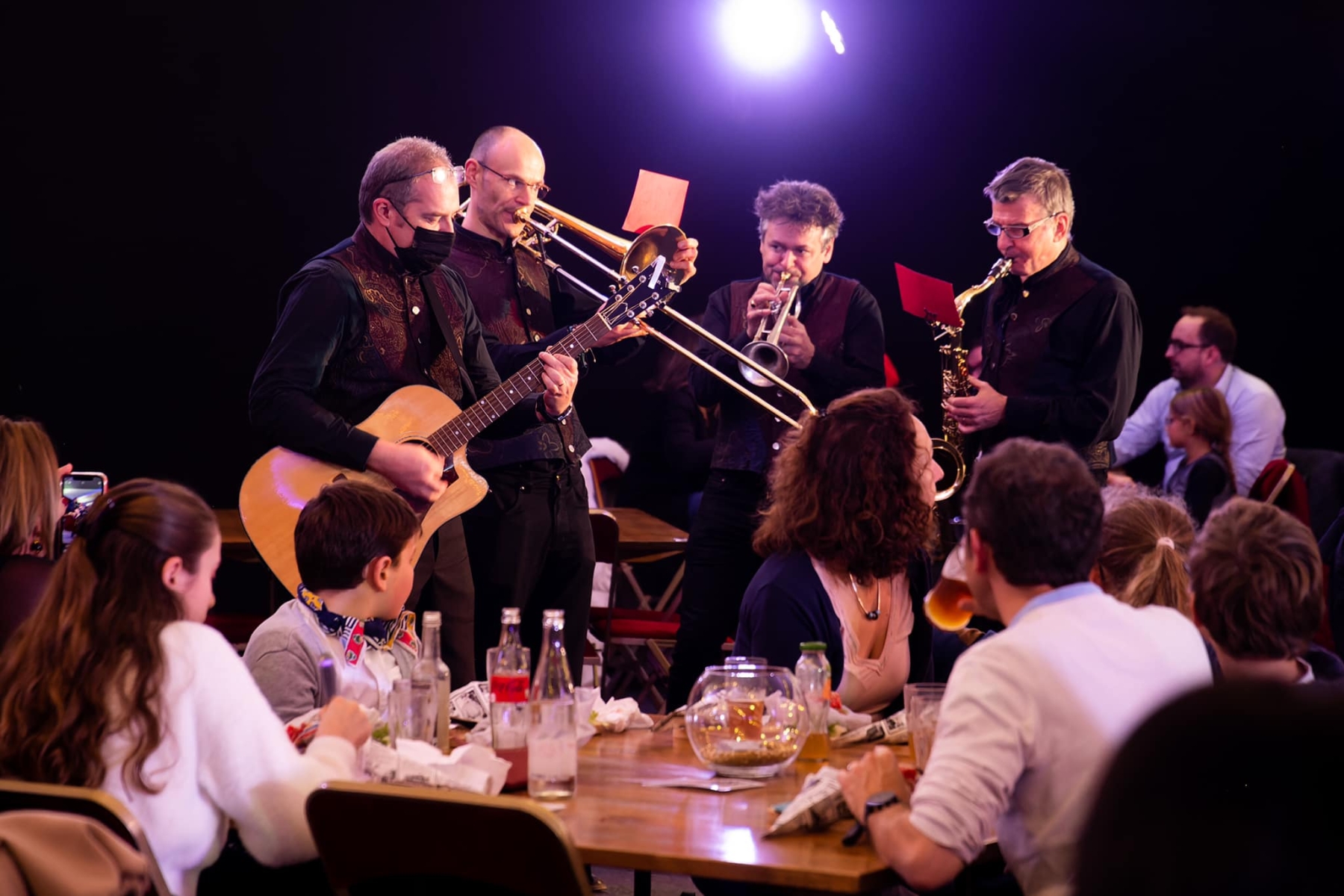 On the menu, prepared by a professional caterer, recipes from the sea (smoked fish, oysters, ceviche…), along typical French gastronomy (cold cuts, among other delights…), to accompany with a cup of champagne or Parisian craft beer. For your information, those extra-show sessions would welcome you on weekends, where you could take the chance to come for lunch before attending the spectacle, so to say from 12:30pm. Adding to this, don’t miss the kids zone, able to entertain your youngest children, along a series of artistic and musical performances that still take place throughout your lunch.