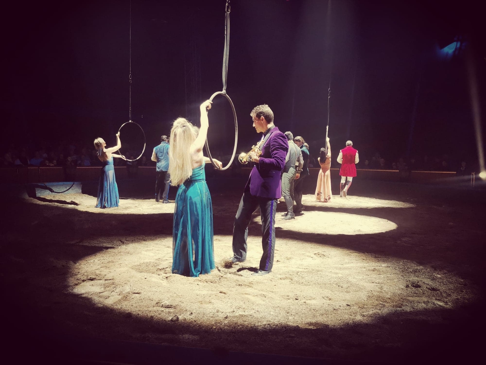 Indeed, you may share a fairy lunch or dinner, under a part of the marquee. A good occasion to exchange with the other spectators and even with the various artists, before or after the show. Therefore, during your lunch, the Gruss artists are your hosts, they would offer you a sort of appetizer with a real orchestra lead by the singer Candice Parise.