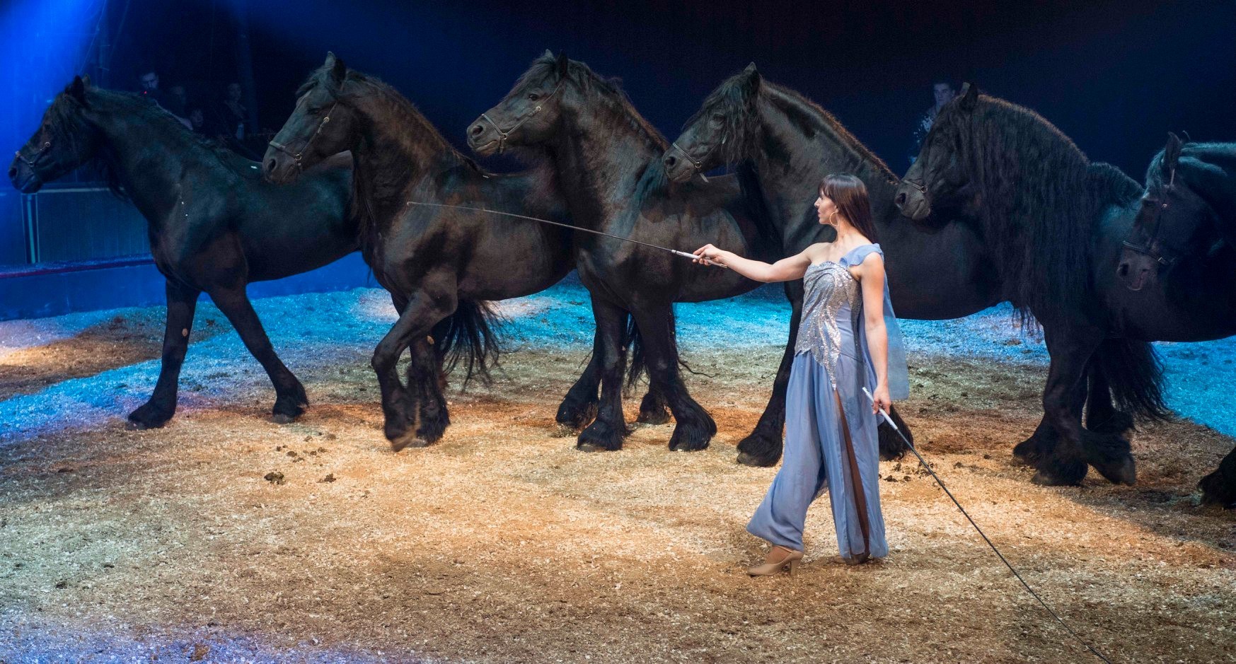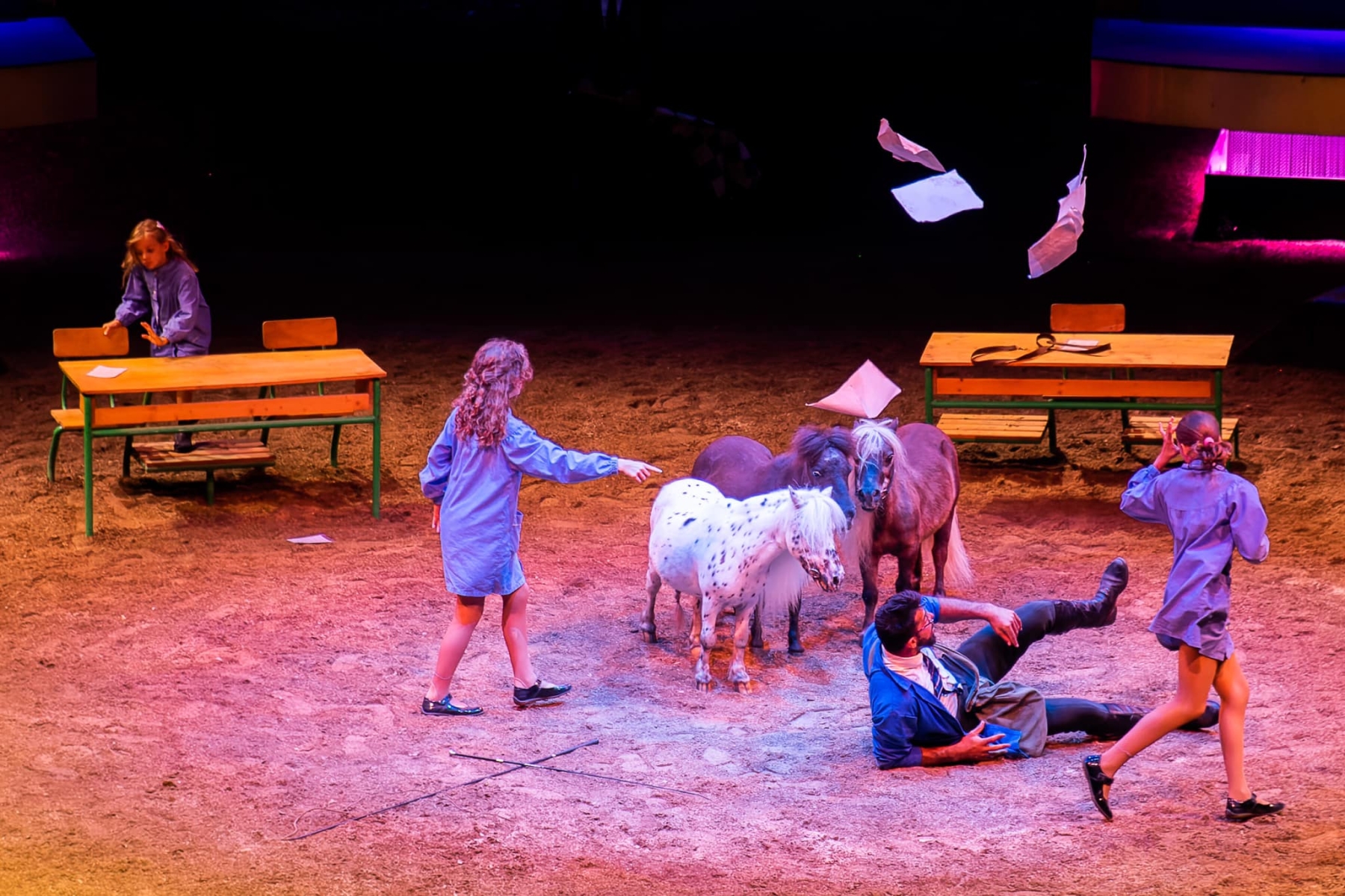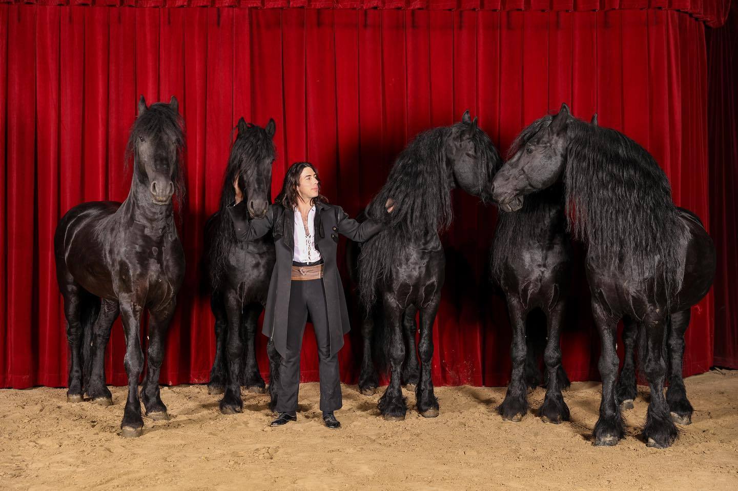 In order to bring together humans, computers and horses was a great challenge. You will also see in this show some young horses that have been in training for several years and debuting their first appearances in the arena. For example, 4 young pure-bred arab horses, who present a musical chairs style number where they jump in and out of giant baskets.