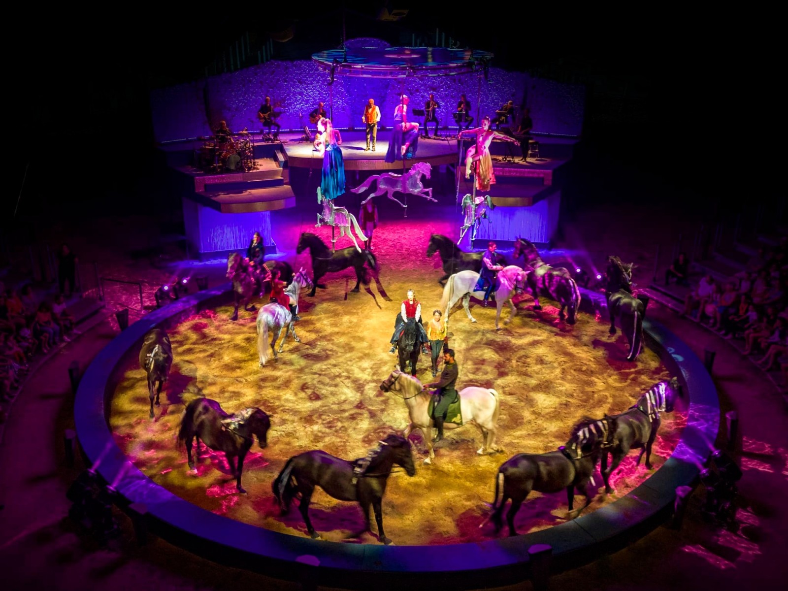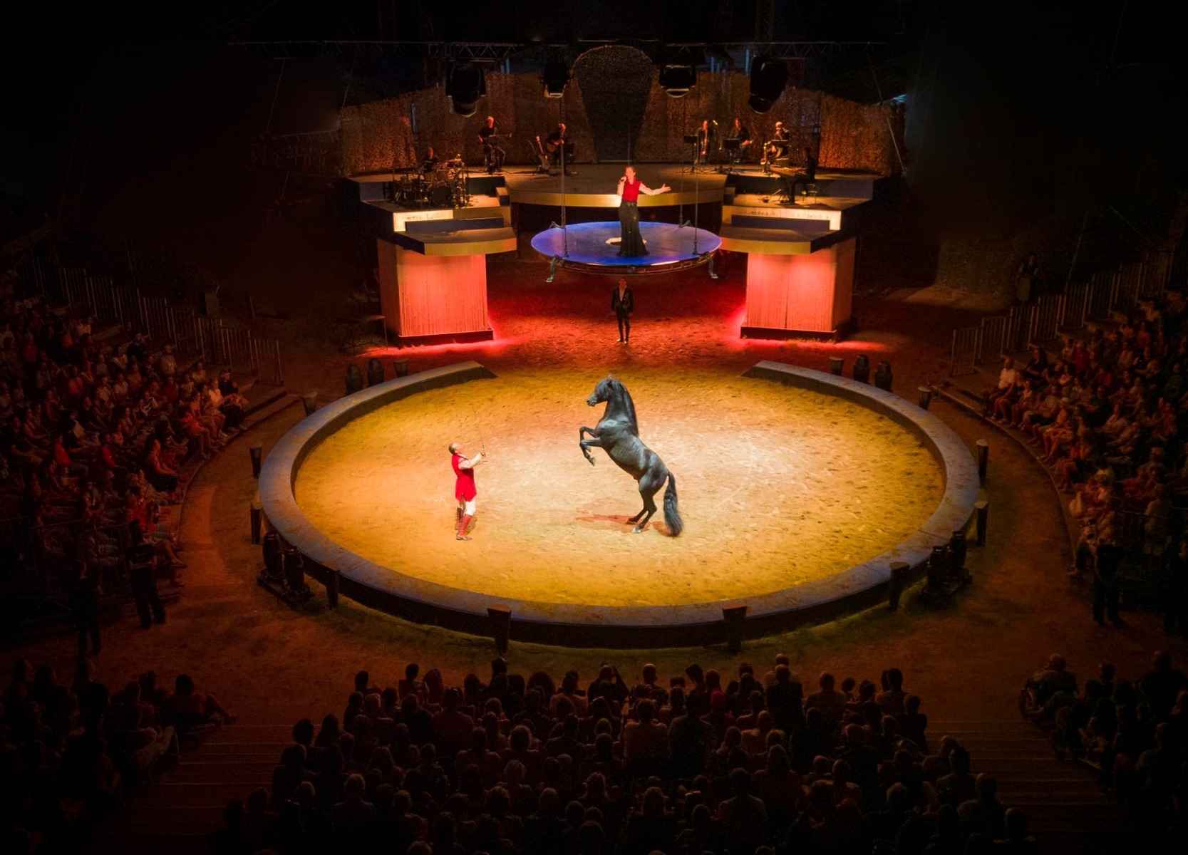 The Gruss family and their 50 horses welcome you for a magical moment with your family and friends all in one place. More than just a spectacular show with 3000 places, Les Folies Gruss is an experience that begins with a high quality restaurant in which you are surrounded by on going live music and artistic performances. Either accessible from Parisian metro, by foot and easily accessible by car from the ring road of Paris’ periphérique, situated in the Parisian woodlands of the Bois de Boulogne, facing a lake, you will be welcomed by horses right from the moment you arrive.