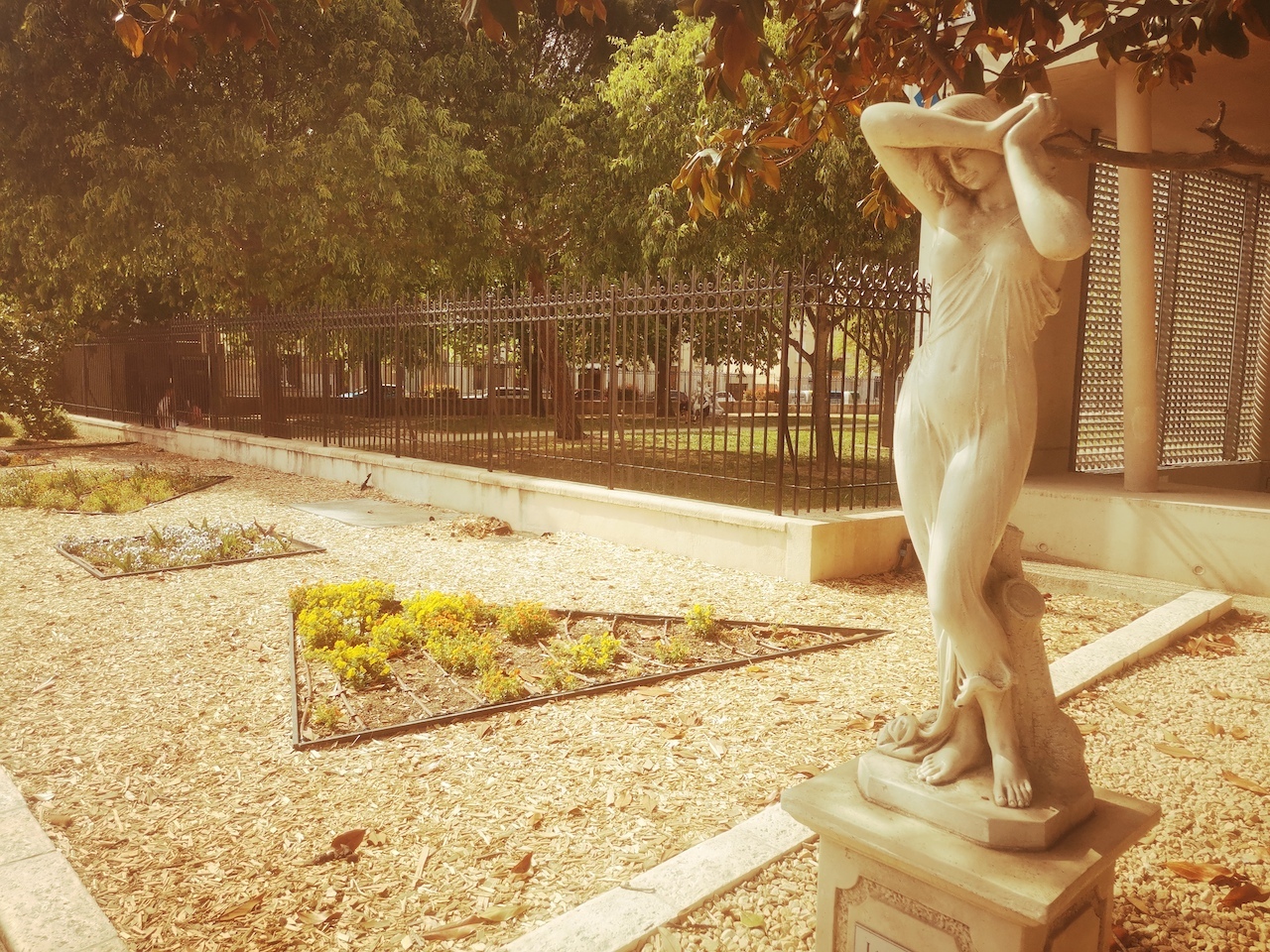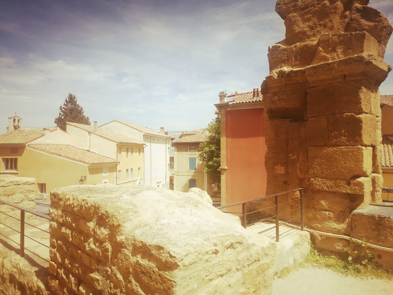 ..such as this neo-classical entrance gate.An authentic stoned terrace, overlooking the streets of Orange..