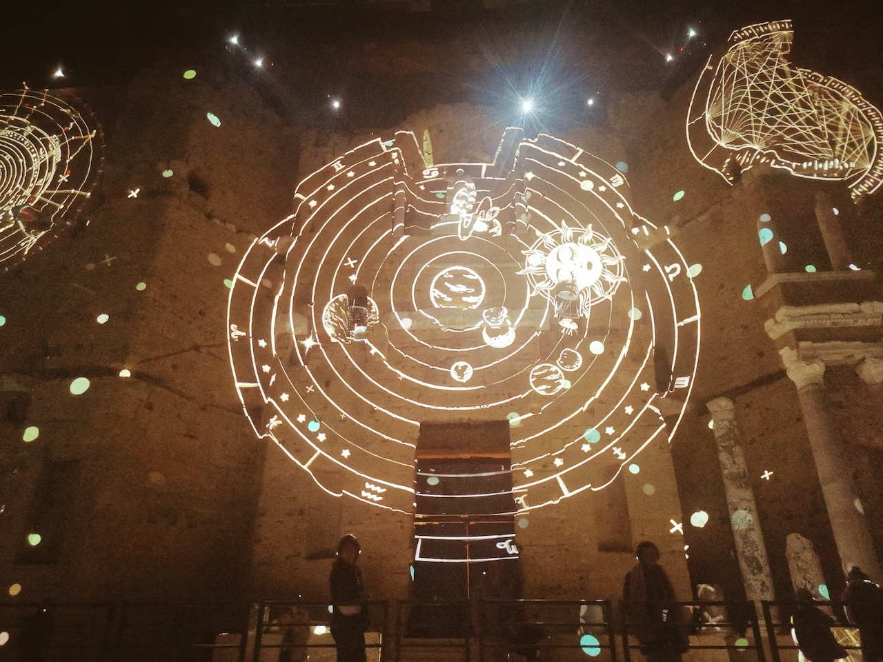 Nonetheless, this technical prowess is happily a good way to revive the majestic architecture of this masterpiece through a magical scenery. Thus, in this amazing digital art installation of 45 minutes, get ready to contemplate the videomapping projection permitted by no less than 25 projectors, broadcasting those animatedimages on this theater‘s facade. Thus, this natural screen is extended over a surface of 5,000m2 on a 35 meters height.