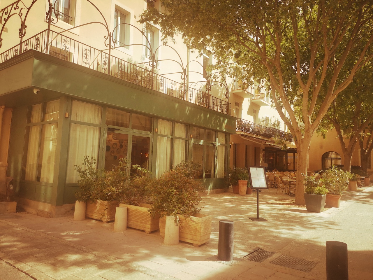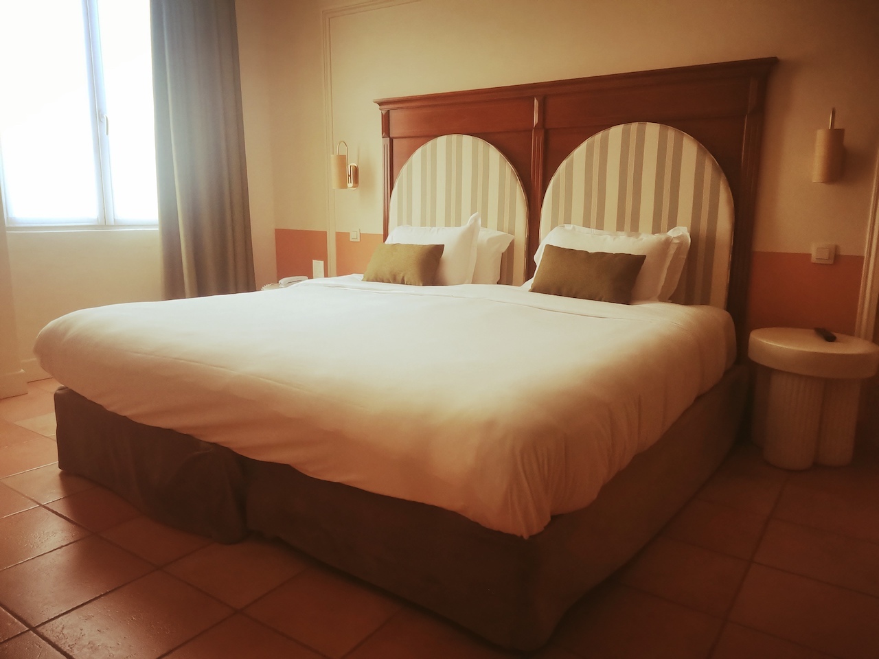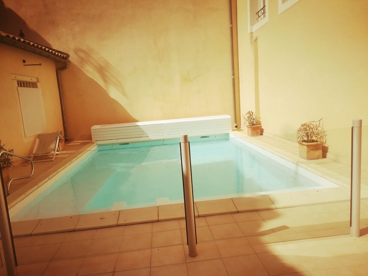 Therefore, this Grand Hôtel may be regarded as a comfortable resting place, adorned by a contemporary decoration but also paying a tribute to Roman remains, along a supposed Art Deco wink. Referring to those various pottery pieces exhibited around the walls from the front desk but also the immaculate Roman columns as night tables! Indeed, you would benefit from four different types (and sizes) of cosy and air-conditioned rooms, often colliding spacious and terra cotta tiled bathrooms, starring L’Occitane ustensils.