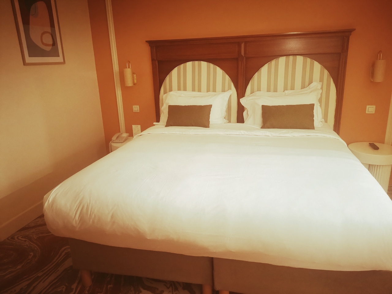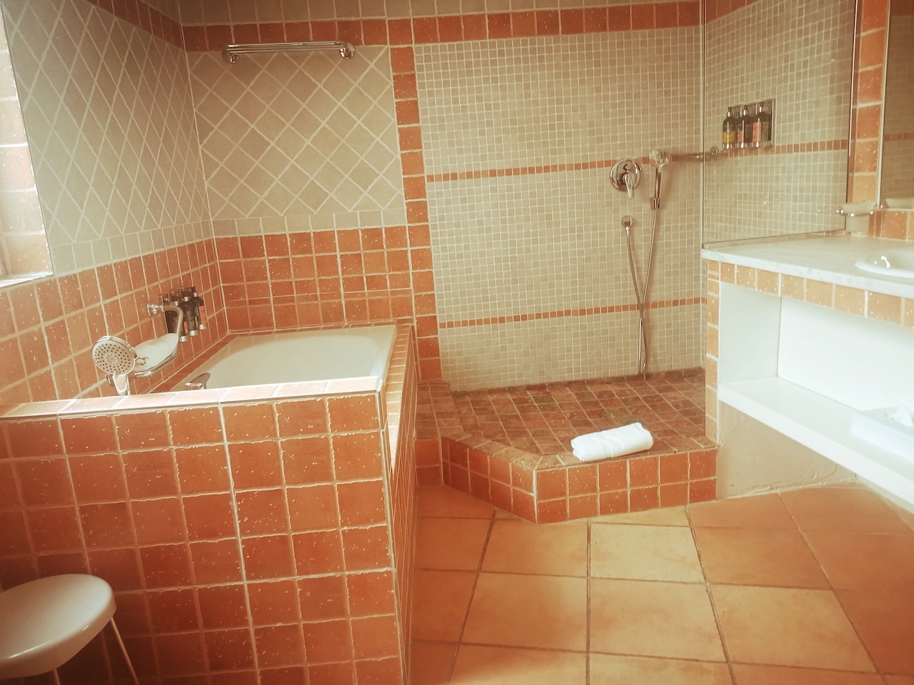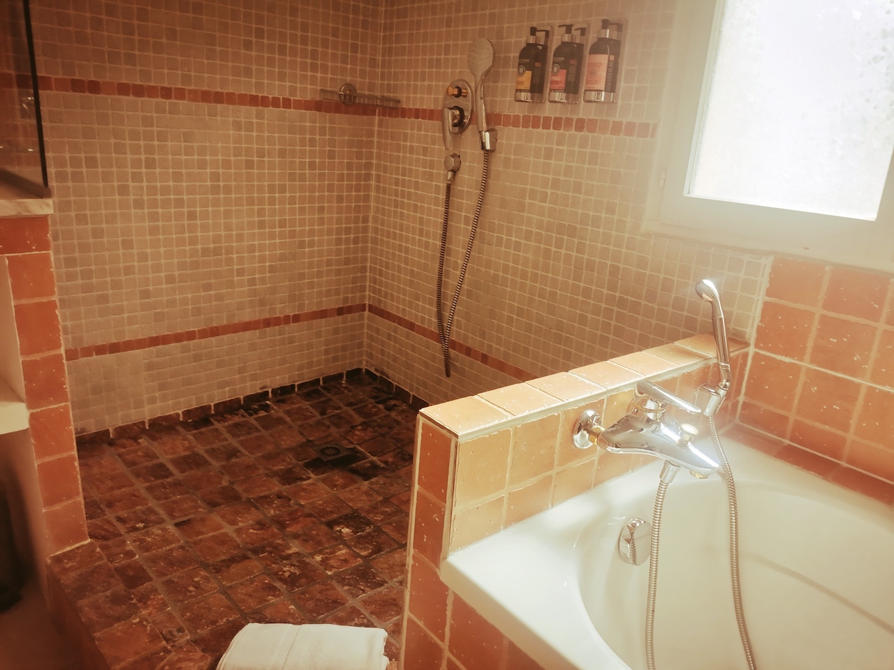 Therefore, this Grand Hôtel may be regarded as a comfortable resting place, adorned by a contemporary decoration but also paying a tribute to Roman remains, along a supposed Art Deco wink. Referring to those various pottery pieces exhibited around the walls from the front desk but also the immaculate Roman columns as night tables! Indeed, you would benefit from four different types (and sizes) of cosy and air-conditioned rooms, often colliding spacious and terra cotta tiled bathrooms, starring L’Occitane ustensils.
