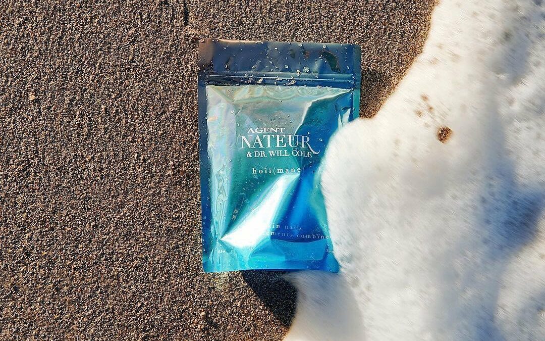 In terms of dietary supplements, we invite you to adopt their Holi(Mane) as Hair, Skin and Nails Food Supplement. This mixable antioxidant powder, stuck in a cyan packet, embodies a mineral-rich formulation, willing to stimulate the production and regeneration of your so much precious collagen. Reinforced with the action of some marine collagen, you would naturally be seduced by its protecting action against daily external aggressions.