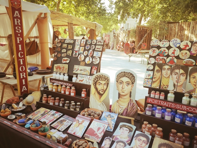 This market sits nearby the Gallo-Roman village, where also stands a couple of workshops, to inform you more about handmade traditions of Gallo-Roman ceramics, leather work, bronze, rope making, along falconry demonstrations, so to say buzzards, falcons, eagles, and even owls.