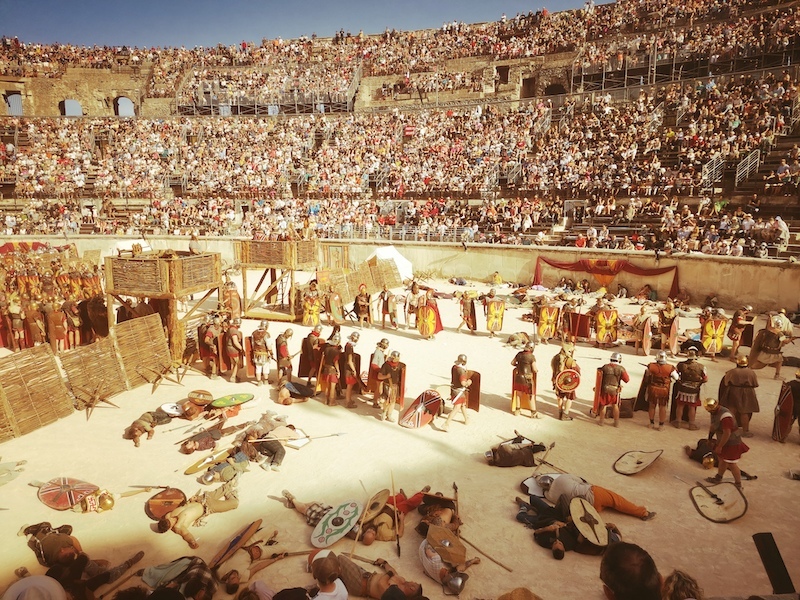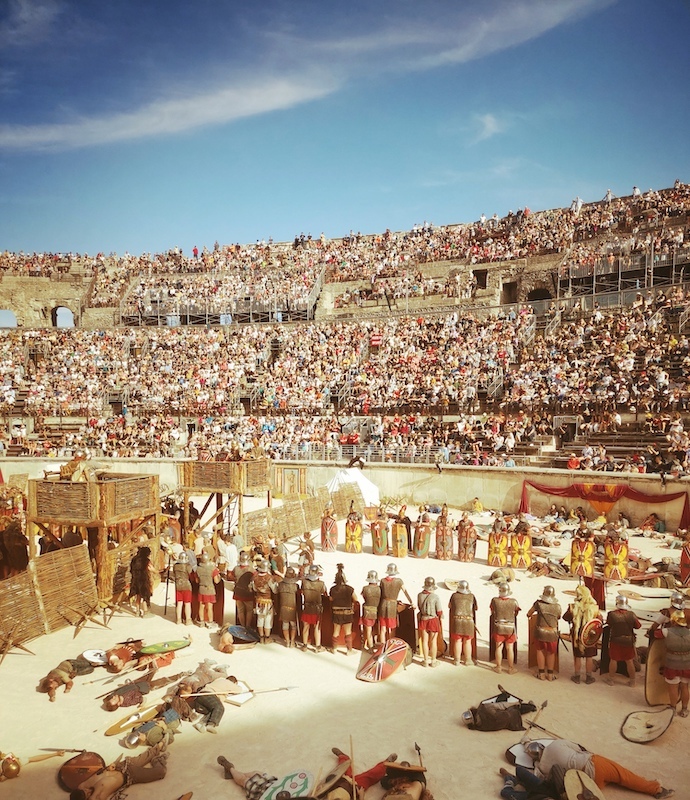 Therefore, even 2000 years after its construction, those Arenas are still the theater of events and even corridas! During those Journées Romaines, a part from the Roman history gets offered to you with this “Vercingetorix” experience.