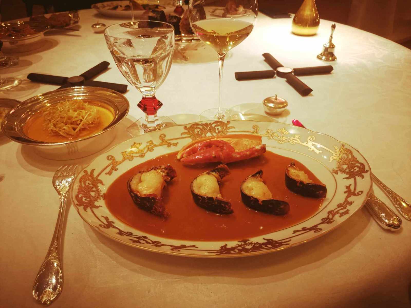 Last but not least, you can be sure that a huge focus is set on desserts, with a real detail brought to scenery. If we mention this dome hiding a charming giraffe, surrounded by sweet chocolate delights. A farandole of sweet delights is proposed and can be shared, among a surprising lemon pancake, flambéed with limoncello, a fine cream soaked into a vanilla syrup, incredible (still homemade) pink praline ice cream and a Fontainebleau in reference to the royal dairy.