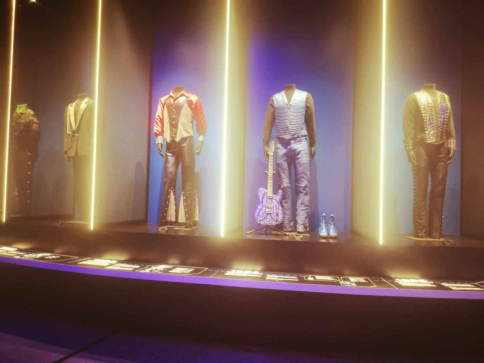 There are nearly 50 stage costumes, 25 guitars, and jewelry including the famous Harry Winston pendant in white gold and diamond. The public will also be able to admire his Cobra vehicle, his last three Harley-Davidsons, as well as photos, awards and unpublished personal pieces.