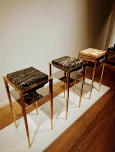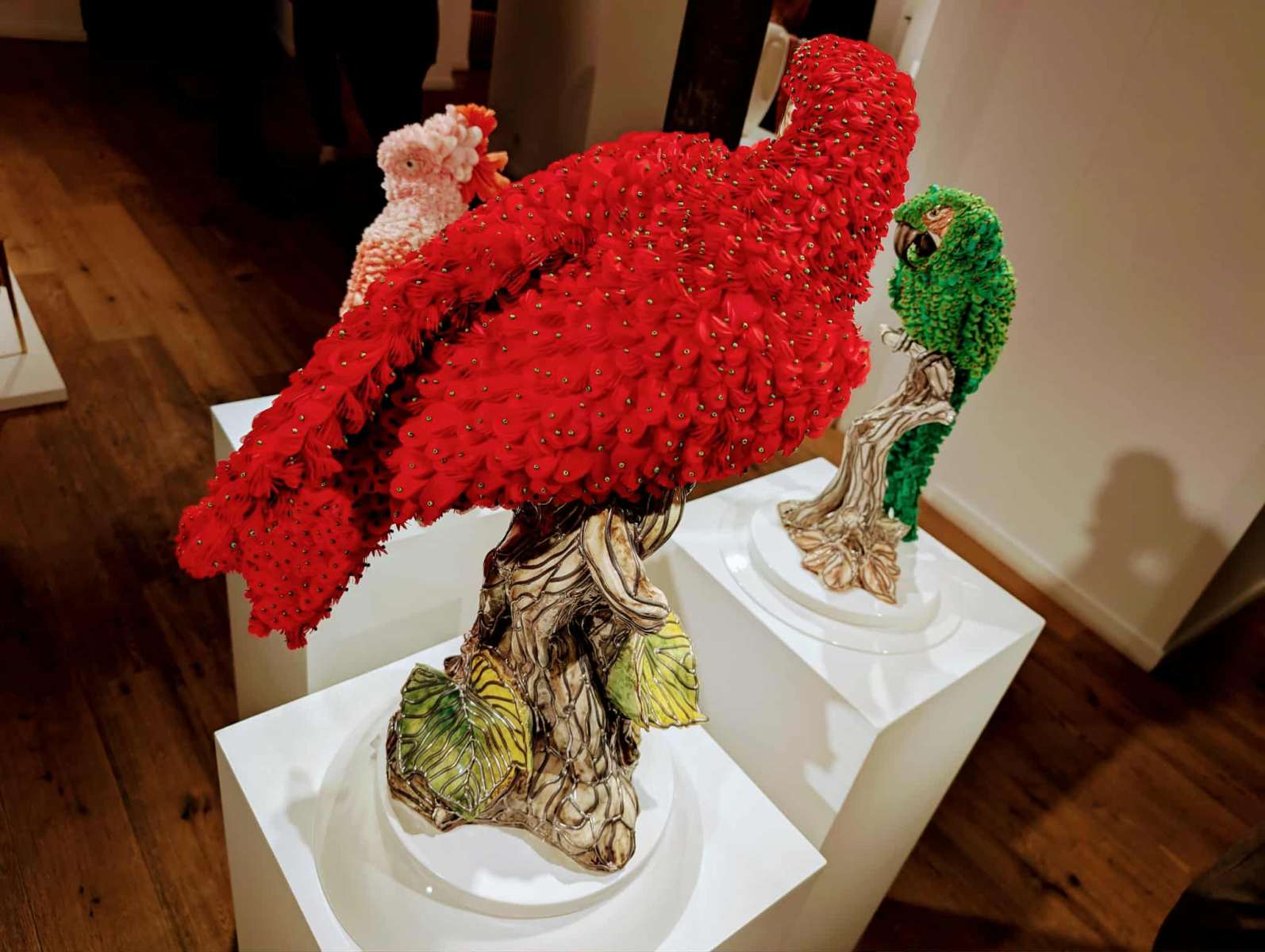The sculptures, installations, and art furniture on display reveal a shared fascination for noble materials, such as marble, glass, bronze, plaster, and horsehair and for the expressive power of form. For example, Gianluca Pacchioni contrasts raw stone with polished surfaces; along Éric de Dormael shaping ethereal architectures in plaster and paper, where light becomes structure. Whereas Jean-Christophe Malaval revisits marine mythology through his Atlantis vases, while Ulrika Liljedahl weaves horsehair into vibrant, chromatic compositions. Without forgetting the colorful parrots, imagined by the artist Tal Lancman.