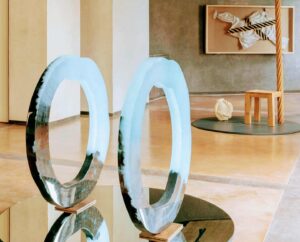 This opening marked a turning point for gallerist Sophie Negropontes, from Greek-Romanian origin, who used to be trained in business and luxury fields. She founded her first gallery in Paris in 2012, from photography to sculpture, she cultivates a multidisciplinary approach, blending decorative arts and contemporary creation. Her new Venetian address, located in the Dorsoduro district, extends this vision, as a bridge between two shores, the Seine river and the Grand Canal, between a certain heritage and modernity. The inaugural exhibition, named Armonia Metis, presented from March 22nd to November 24th, 2024, celebrated some diversity and artistic hybridity. On the ground floor, you may admire various artworks by the gallery’s artists, engaging in an open dialogue, while upstairs, the glass sculptures of the duet Perrin & Perrin, paying homage to Scarpa, while playing with correspondences between light, geometry, and architecture, meet the poetic creations of Mircea Cantor.