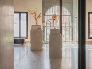 This first exhibition somehow affirmed Sophie Negropontes’ desire to open a space for exchange where disciplines may intersect. In continuity with this approach, the gallery presents, from April 17th to November 22nd, 2025, the Architectural Landscapes, in partnership with the Heritage Asset Management structure. Designed as an echo to the 19th Venice Architecture Biennale, this exhibition explores the links between material, space, and memory. For instance, the monumental sculptures of Gianluca Pacchioni engage in dialogue with Pinton tapestries in a sort of imaginary garden, evoking in a way the 1950s debates around Frank Lloyd Wright’s project for the Palazzina. On the third floor, a series of temporary exhibitions, including Scarpa-Zanon, Dialoghi in collaboration with IUAV University, continue this reflection on the transmission of know-how and the continuity of craftsmanship. Between history and creation, the Galerie Negropontes transforms the Palazzina Masieri into a living space where design, architecture, and contemporary art meet, celebrating beauty in all its forms (photo credits: Galerie Negropontes).