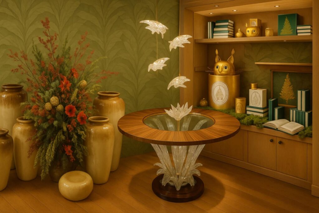 Still for the 2025 holiday season, the Diptyque company invites us to step into a poetic and sensory universe, named A Night of Wax and Gold, as a magical tale imagined by Victor Pouchet, illustrated by Vincent Puente, and enriched by Inès Mélia. Inspired by the atmosphere of the literary cafés of Saint-Germain-des-Prés quarter in Paris, the story features a dreamy bookseller, a mischievous cat named Archibald, and a mysterious golden pinecone, endowed with fascinating olfactory powers. From this tale emerges a limited-edition collection, as a true tribute to imagination, light, and fragrance. Their home decoration collection extends the magic of this tale, notably through mouth-blown glass ornaments, illustrated porcelain trays.